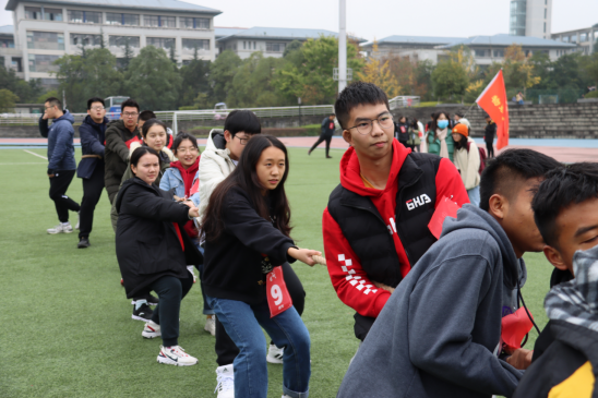 紧接着是下午的拔河环节,我院派出15名参赛选手与航天学院展开激烈比拼。两边选手起初势均力敌,不分高下,一时间难以分出胜负。经过一段时间的拉锯后,航天学院选手找到比赛节奏,不断扩大自己的优势,最终我院惜败航天学院,止步第一轮。经赛后统计,我院以815分的总分位居第四。