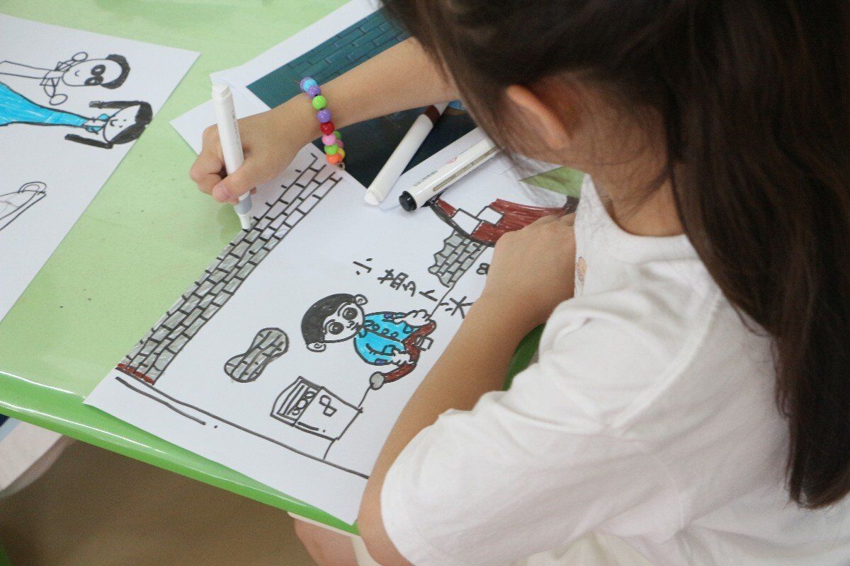 在和小朋友的对话中,实践团成员发现很多孩子都曾去过白公馆,并已经知道不少小萝卜头的事迹,他们心中对小萝卜头有了一定自己的认识。这样运用孩子身边熟悉的红色文化资源,遵循孩子的身心发展规律,以“画本+叙述”视听结合的方式,让孩子去接受以红色为底色的革命传统教育与爱国主义熏陶。