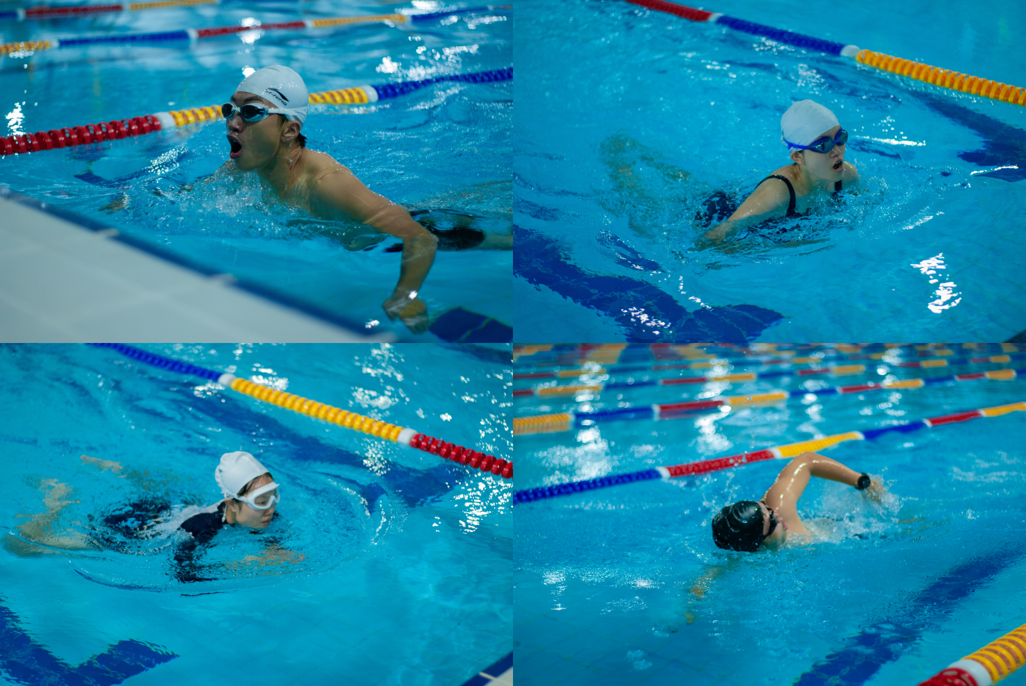 游泳赛事最佳记录。其中选手饶云鹏在男子50米自由泳决赛中以28.80秒的成绩位列全校第一,选手杨沁园在女子200米蛙泳以4分29.80秒的成绩位列全校第一,廖政力、唐斯凡、李雨聪、饶云鹏四位同学在男子4x100米自由泳接力决赛以2分15.97秒的成绩勇夺第一,在20人混合接力项目中以6分53.44秒的成绩位列全校第一。