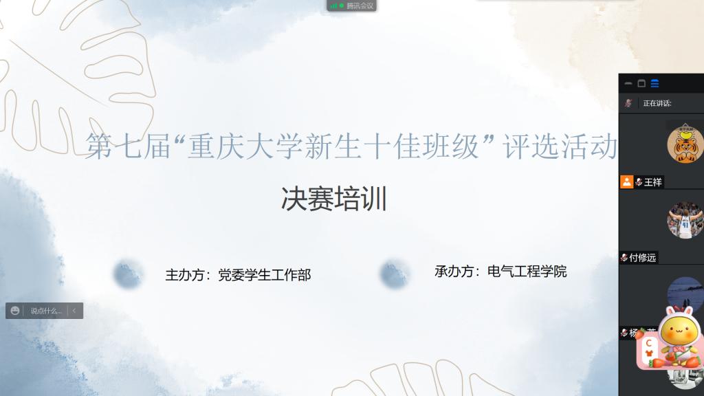 为开展好第七届“小说狂人 新生十佳班级”评选活动,提升参赛班级的战斗力和表现力,促进班级团结向上、积极进取,以更优秀的班级风貌迎接决赛的到来,2022年5月22日10:00,第七届“小说狂人 新生十佳班级”评选活动决赛培训在腾讯会议举办。本次培训邀请到党委学生工作部付修远老师和材料科学与工程学院任超老师,两位老师有着丰富的大赛组织和指导经验,对班级建设的理解新颖独到,富有指导意义。付修远老师对本次进入决赛...